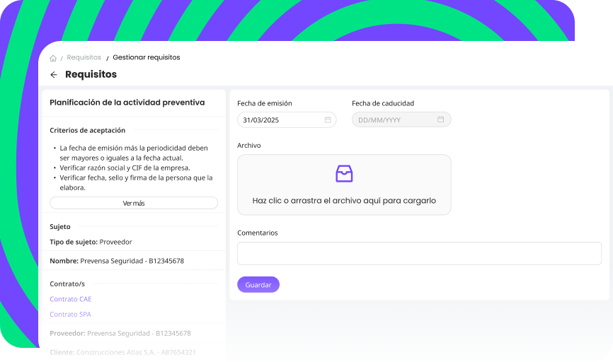 Gestión de subcontratistas Carga y revisa la documentación de tus subcontratas desde tu propia cuenta. | - | |
